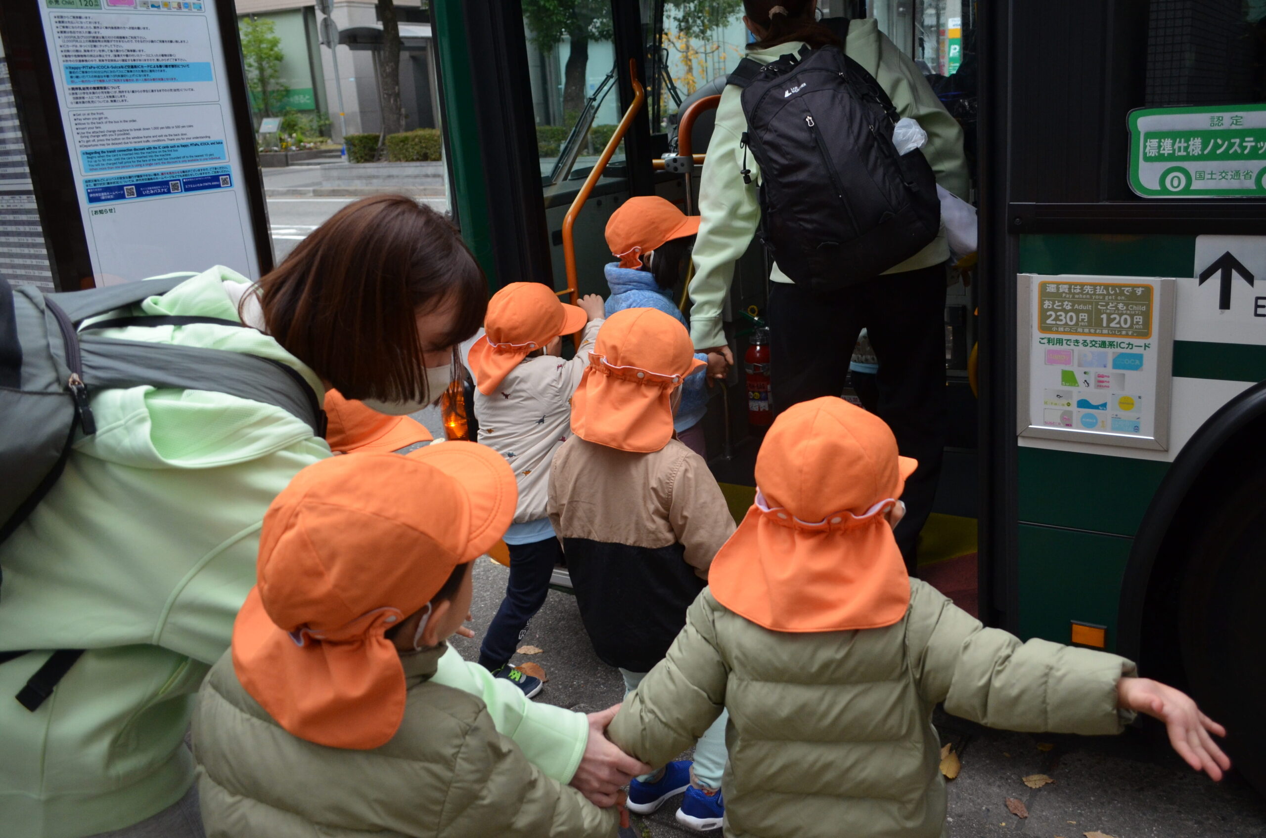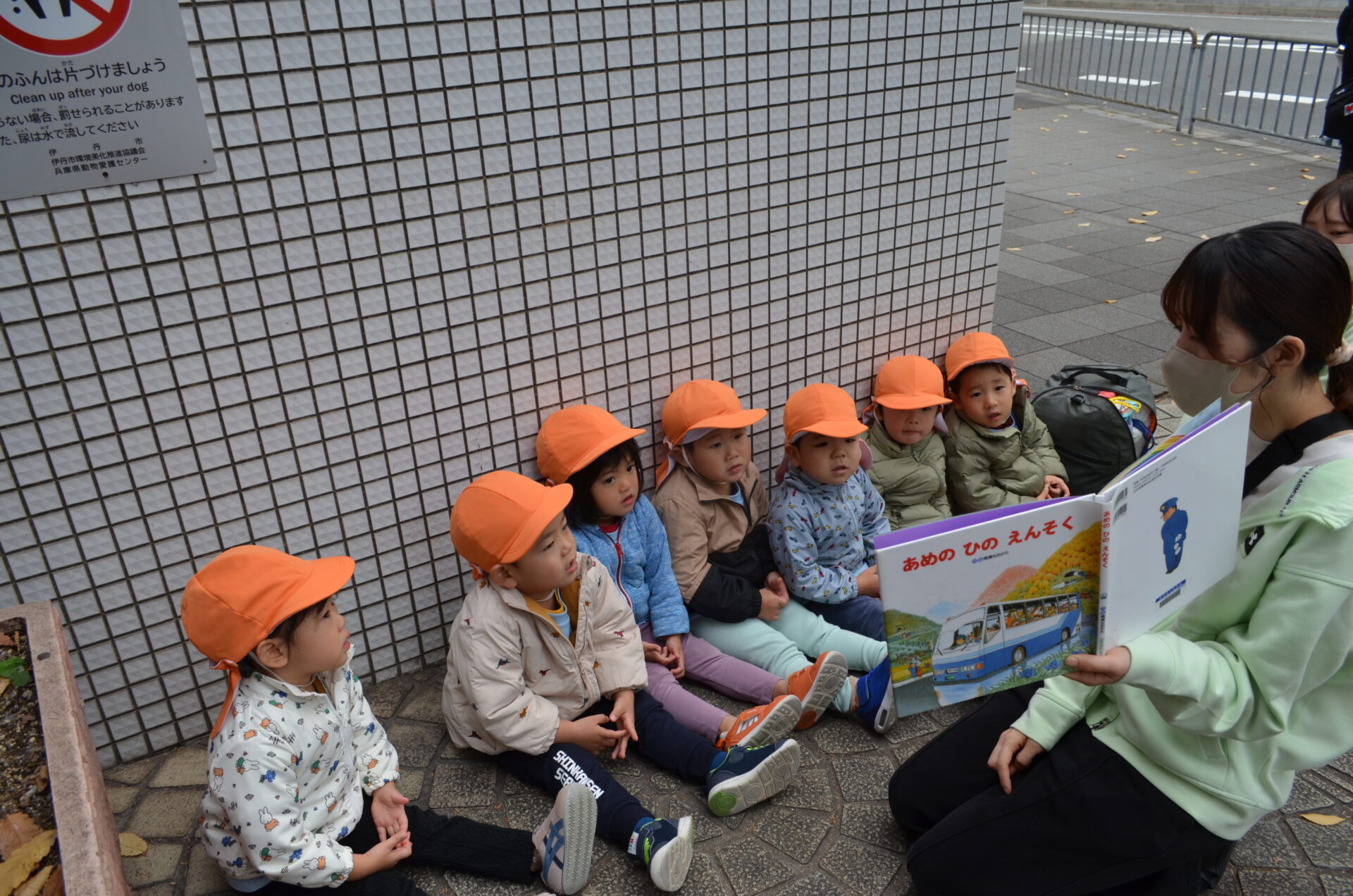 スキップしたいような軽い足取りでバス停に向かい、バス待ちの時間も遠足の絵本を読みながら楽しく過ごしました。