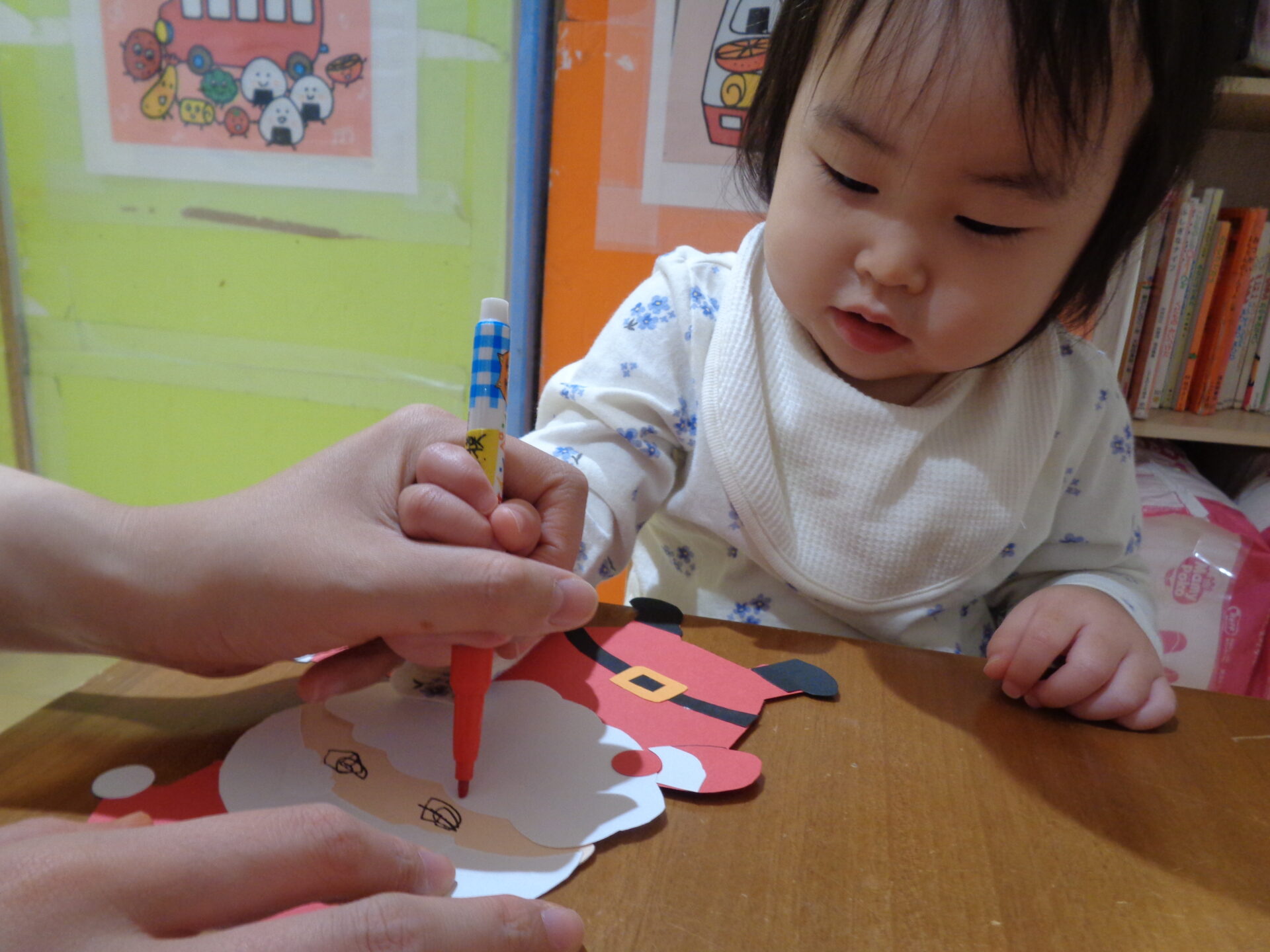 初めてのペンに戸惑ったのかサンタよりペンをじっと見たり