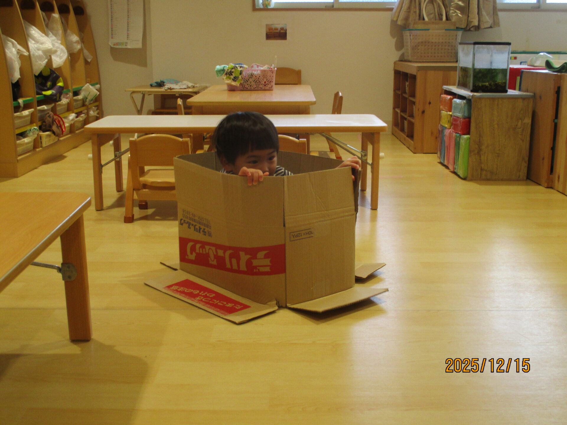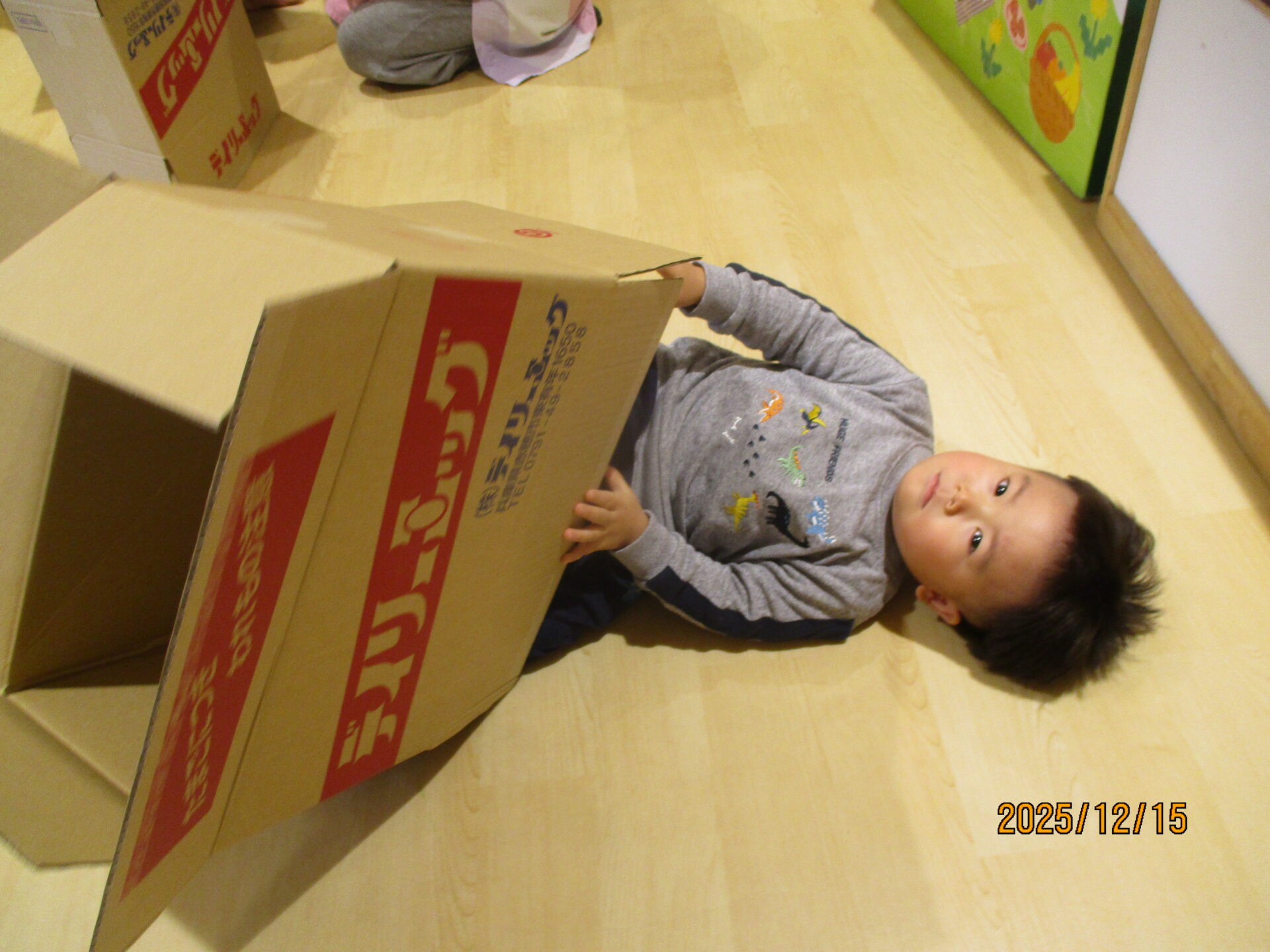 別の日には、段ボールで遊びました。
