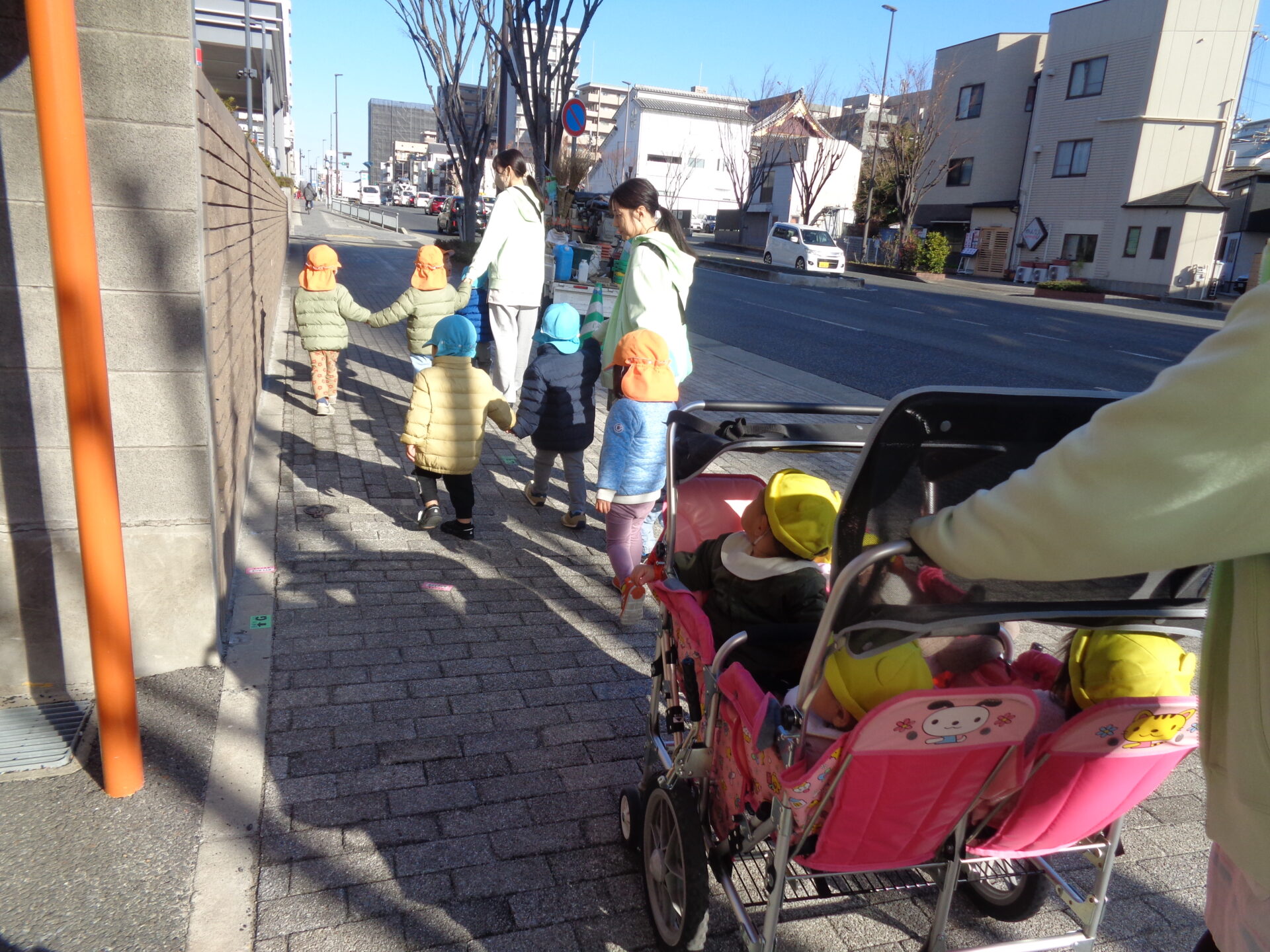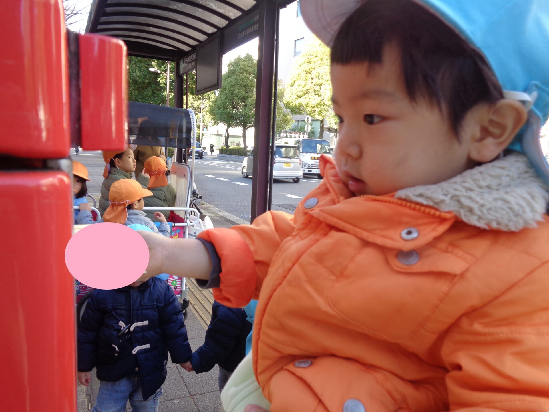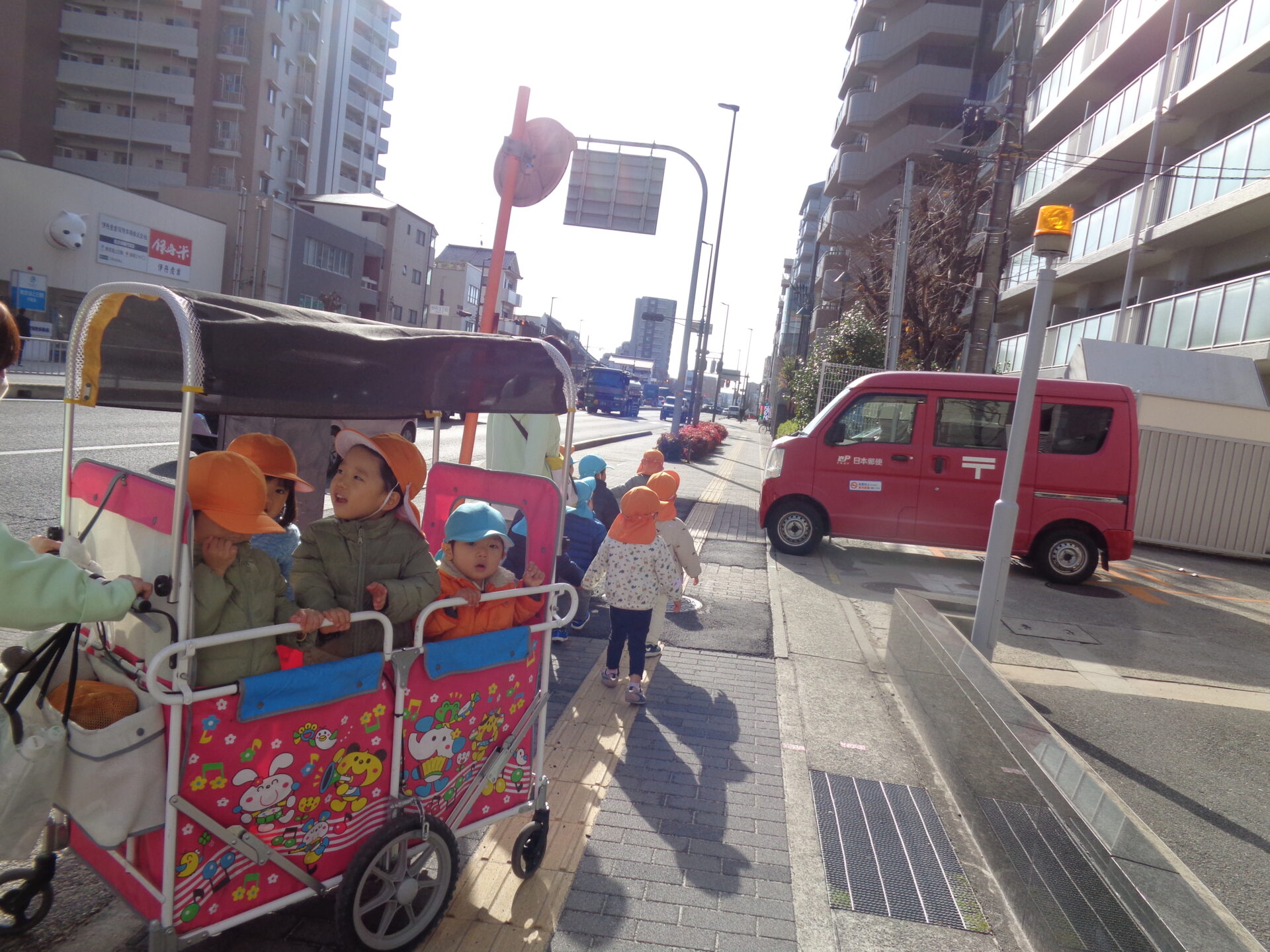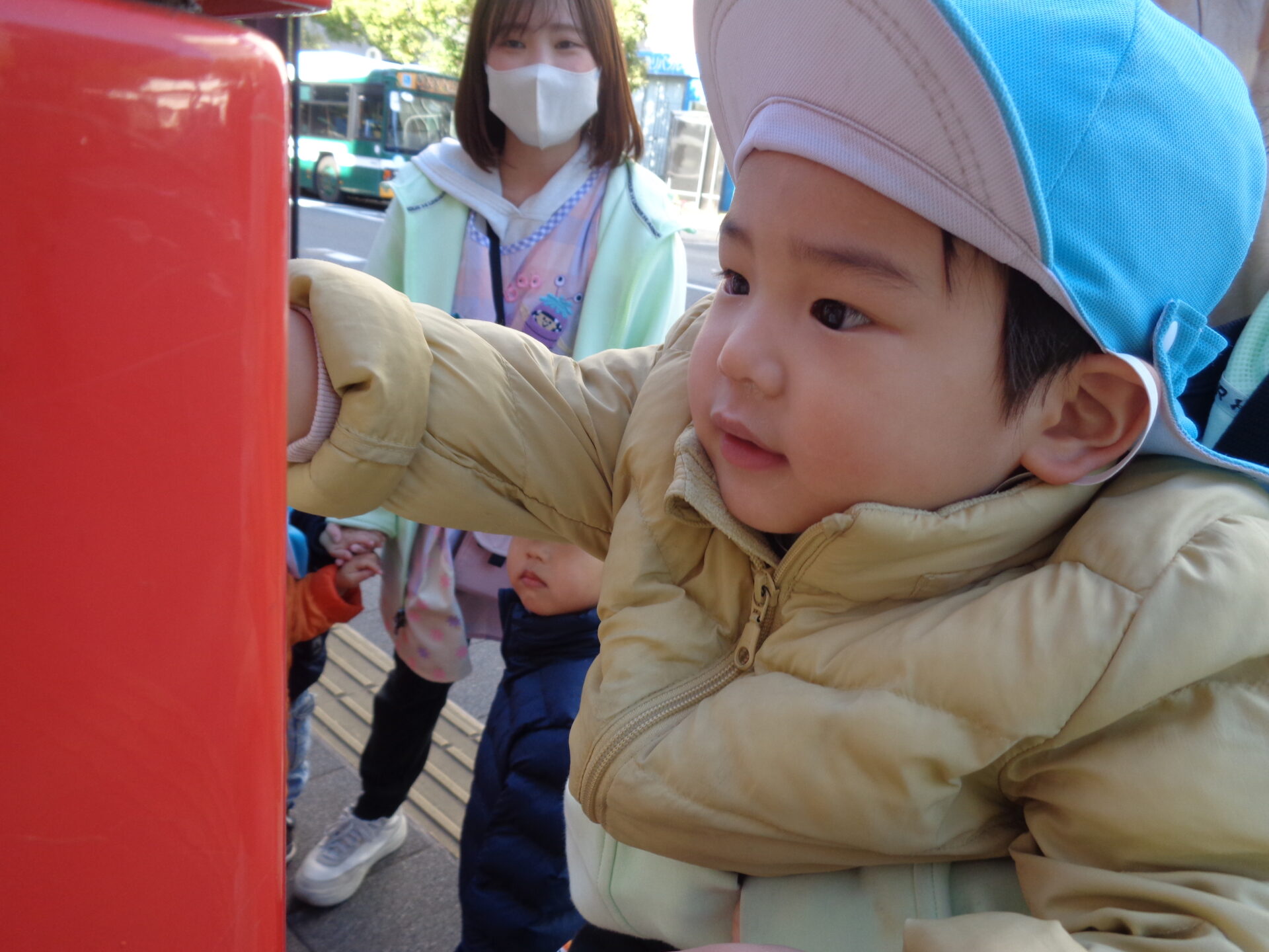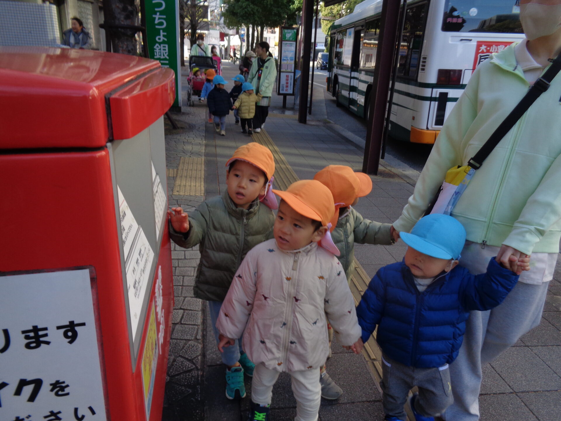 大事に年賀状を持ちうみ組のみんなも抱っこしてもらいながら投函します。