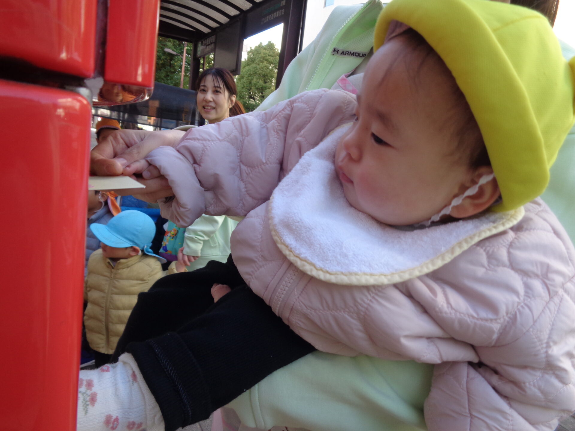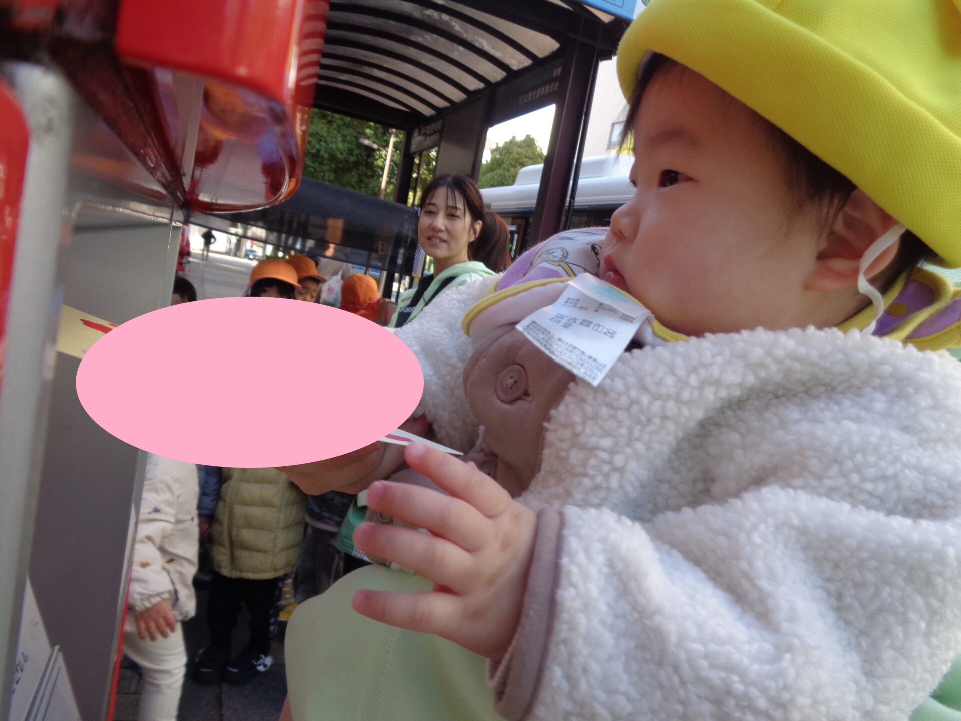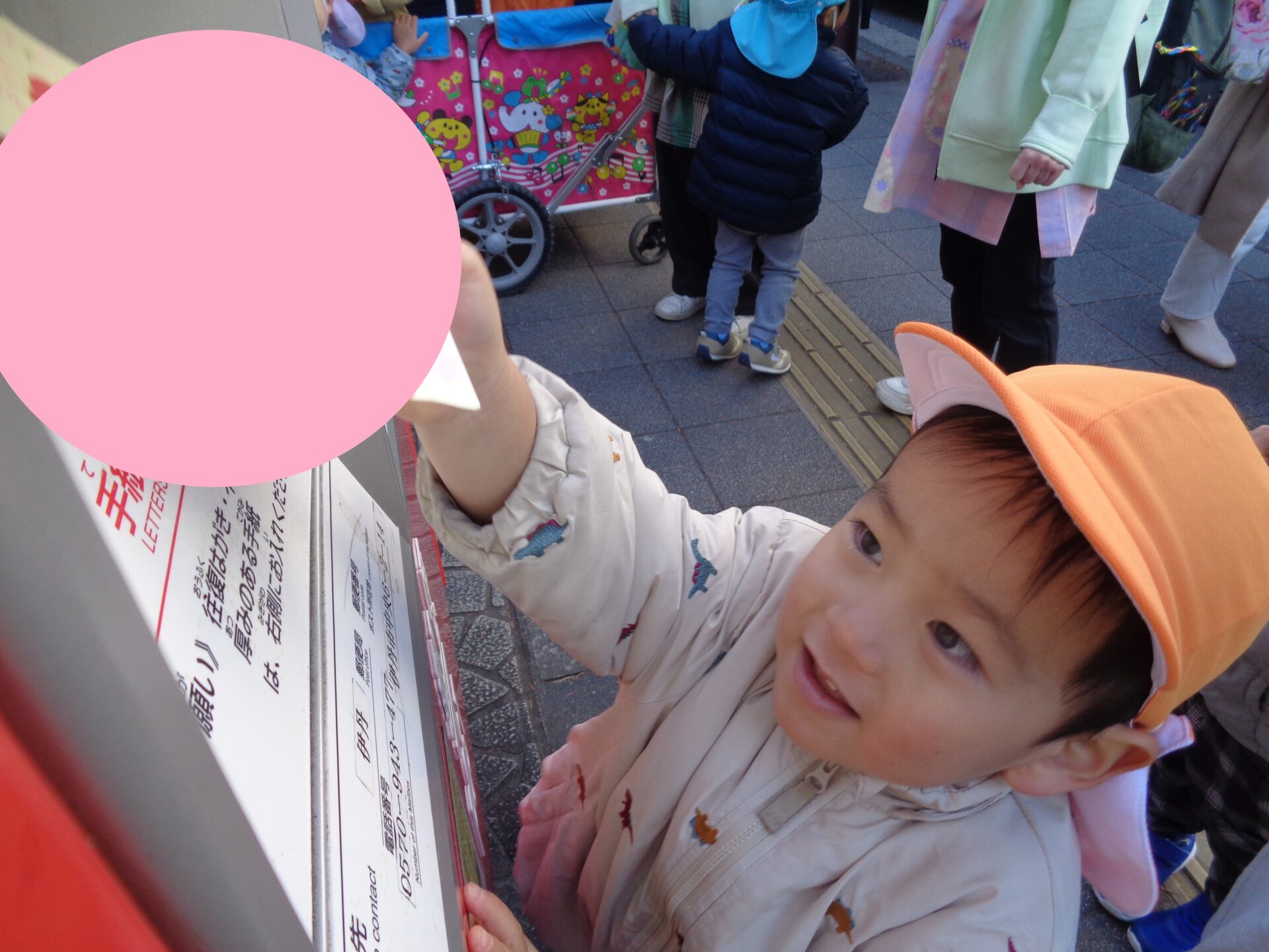 保育士に抱っこをしてもらいながらみんな上手に投函出来ました👏