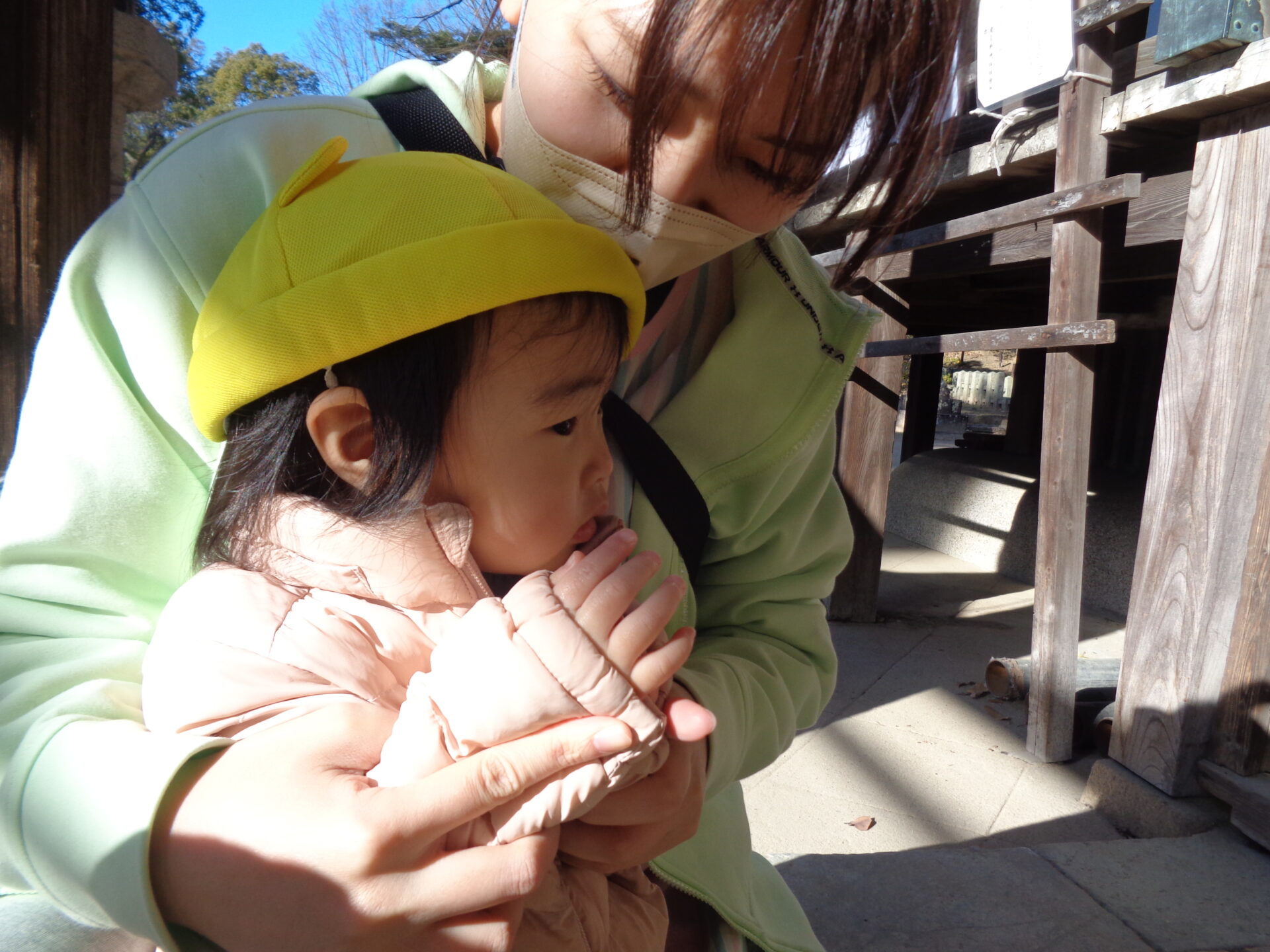 保育士と一緒にカランカランと鈴を鳴らしてお願い事をしました。