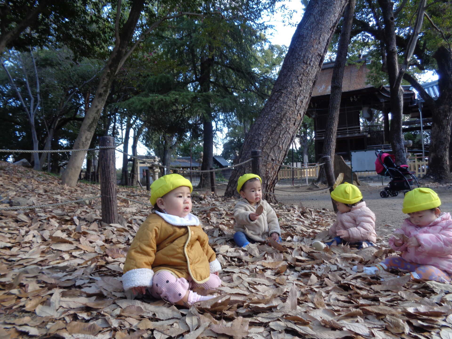 そして、お参り後はよく遊んでいる落ち葉のスペースで遊びました🍂