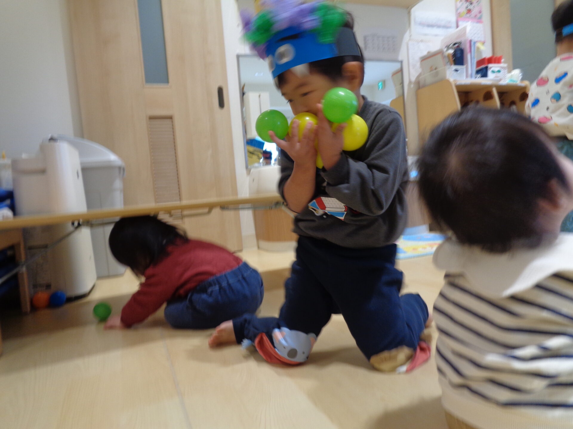あめ組ともなるとたくさんボールを集めて投げようとする姿も見られたり・・・🤭