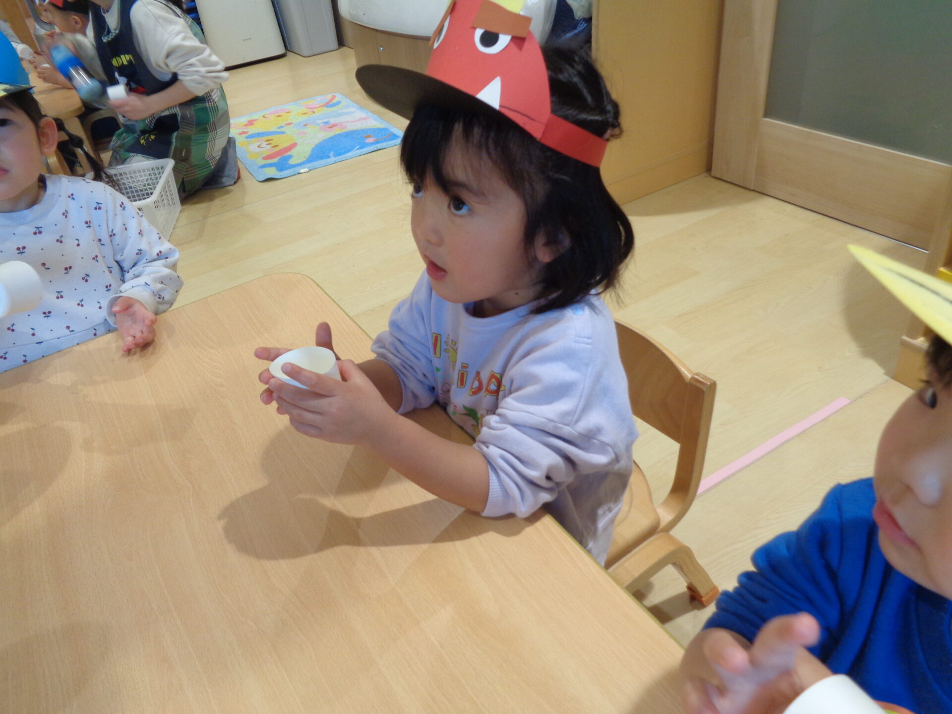 ここがお気に入りで豆が入るように何度もチャレンジする子どももいて、和やかな雰囲気で豆まきができました✨
