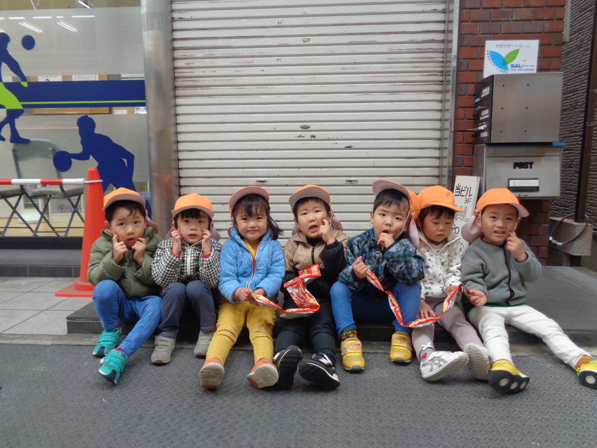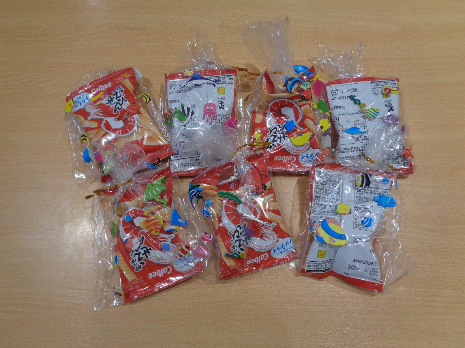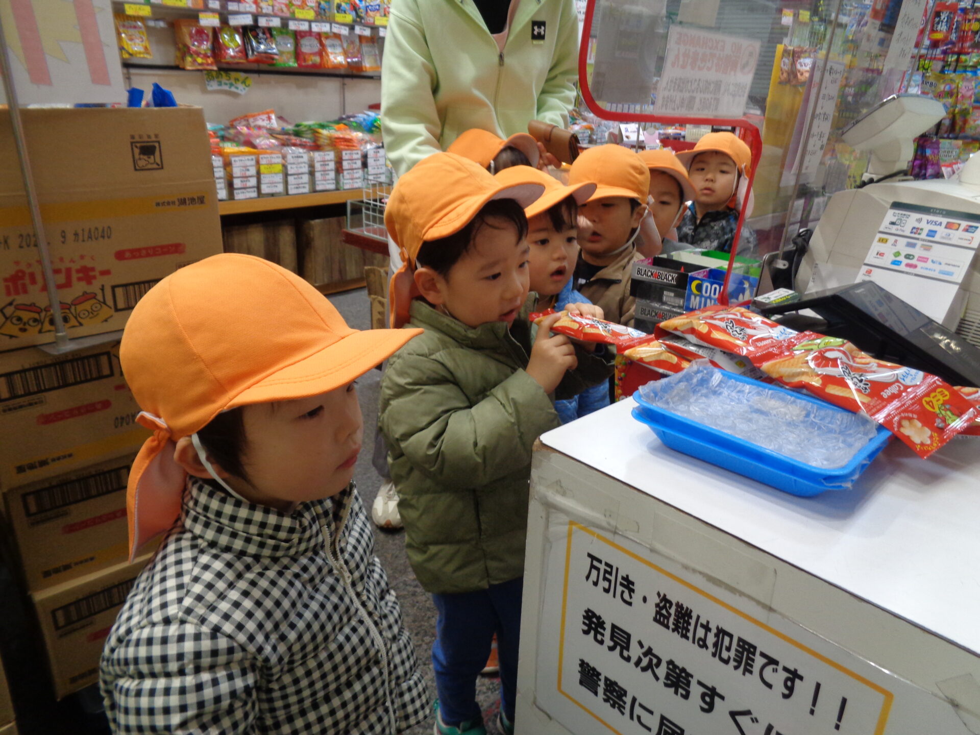 遠足当日に向けて、数日前からお部屋にニフレルの写真を掲示したり、みんなでおやつのお買い物にも行きました🍭