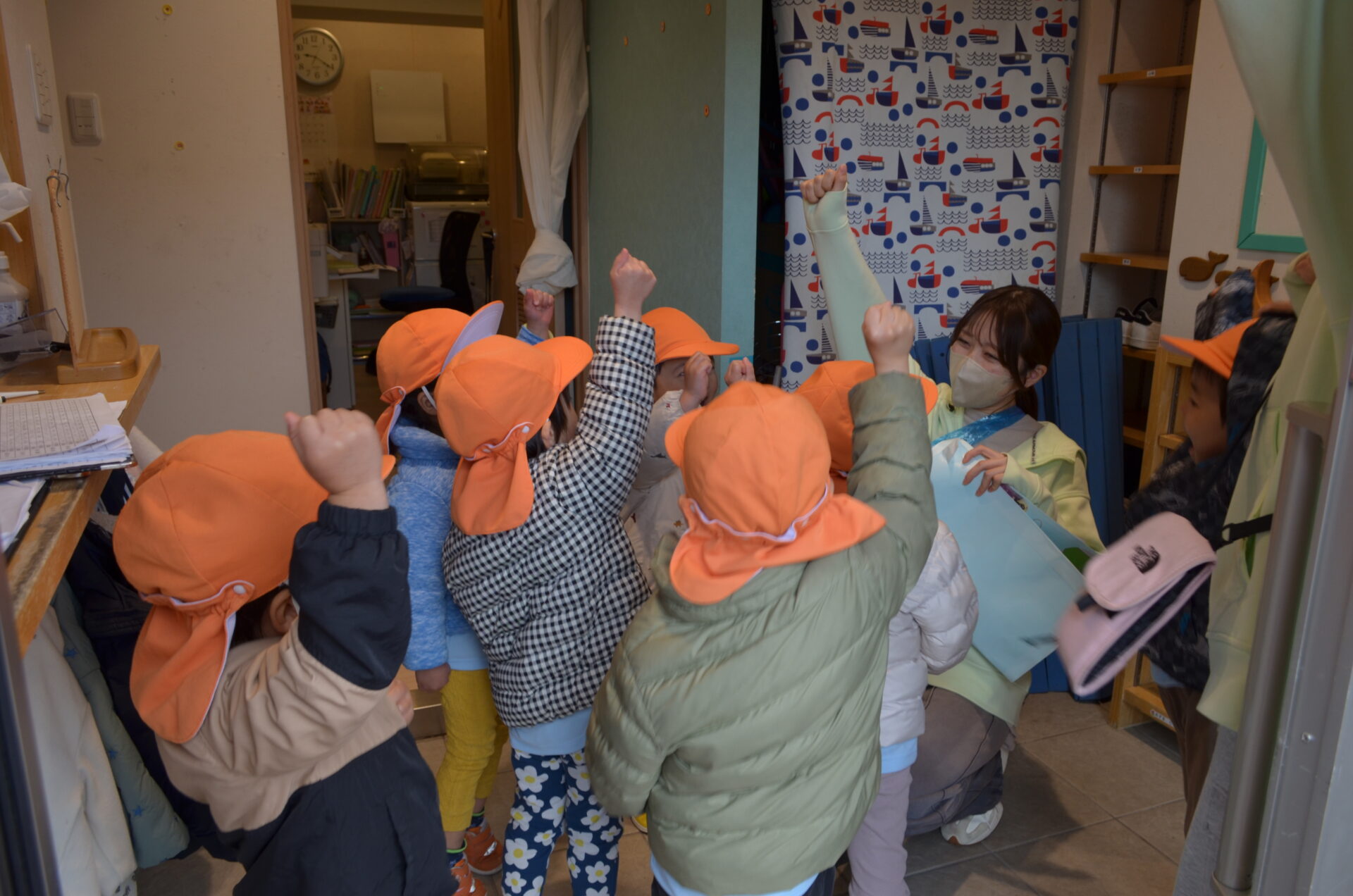 出発前には遠足恒例になった「えいえい、オー!😆」