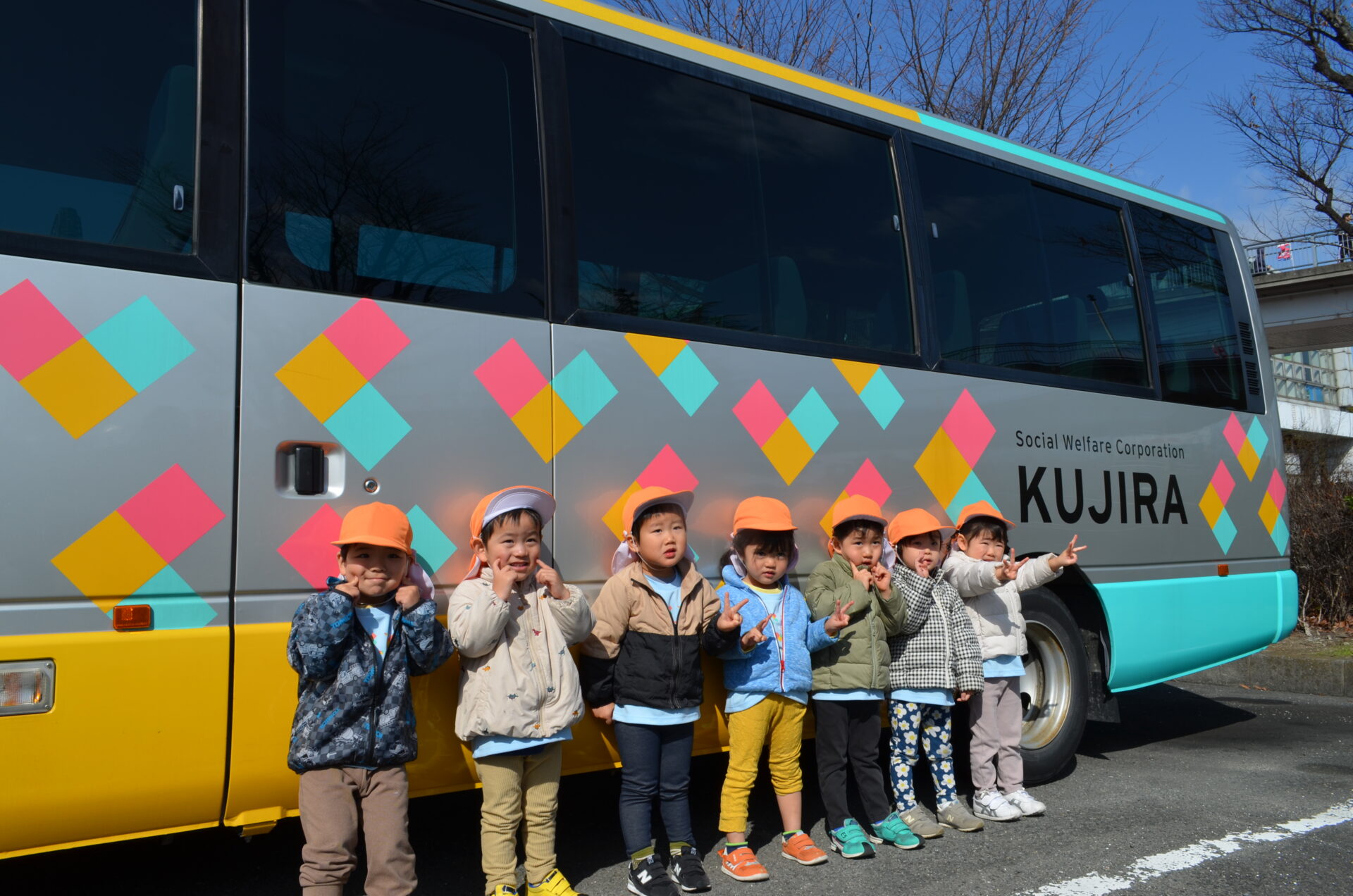 くじらTシャツとバスの法人マークを見比べて、「これいっしょやん!」と気付いてくれる子もいました。