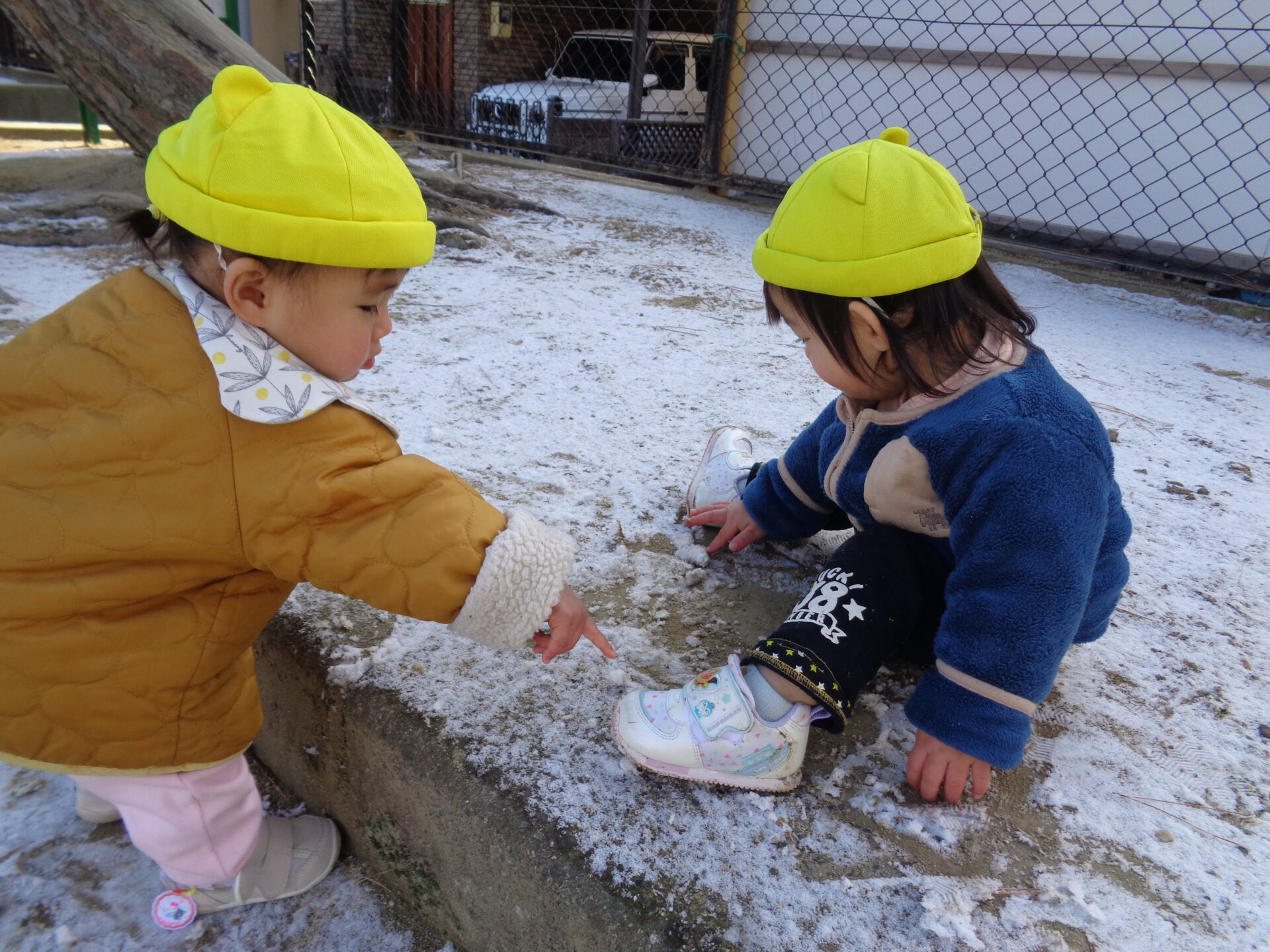 おそらく初めて見たであろう「雪」、寒さにも負けずたくさんお外で身体を動かしました👣