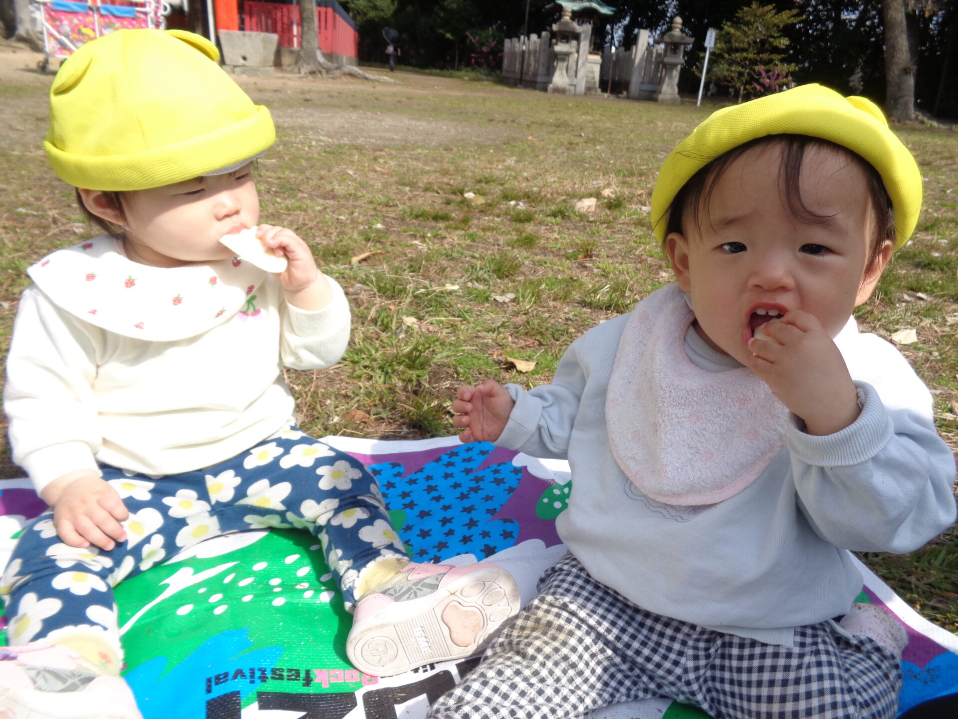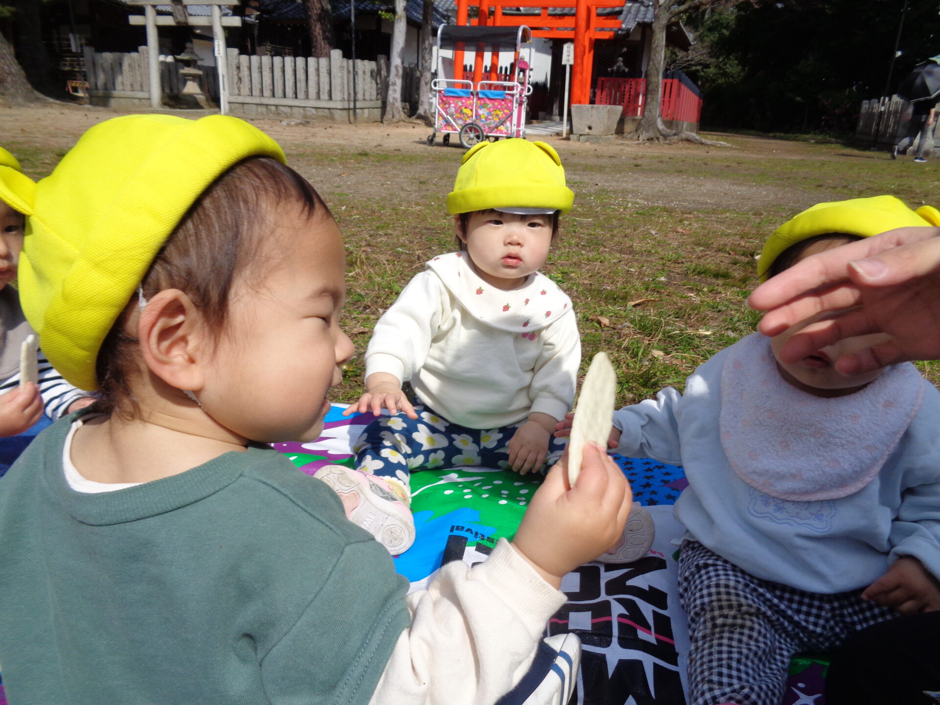 晴れの日に猪名野神社でプチピクニックをしたり、