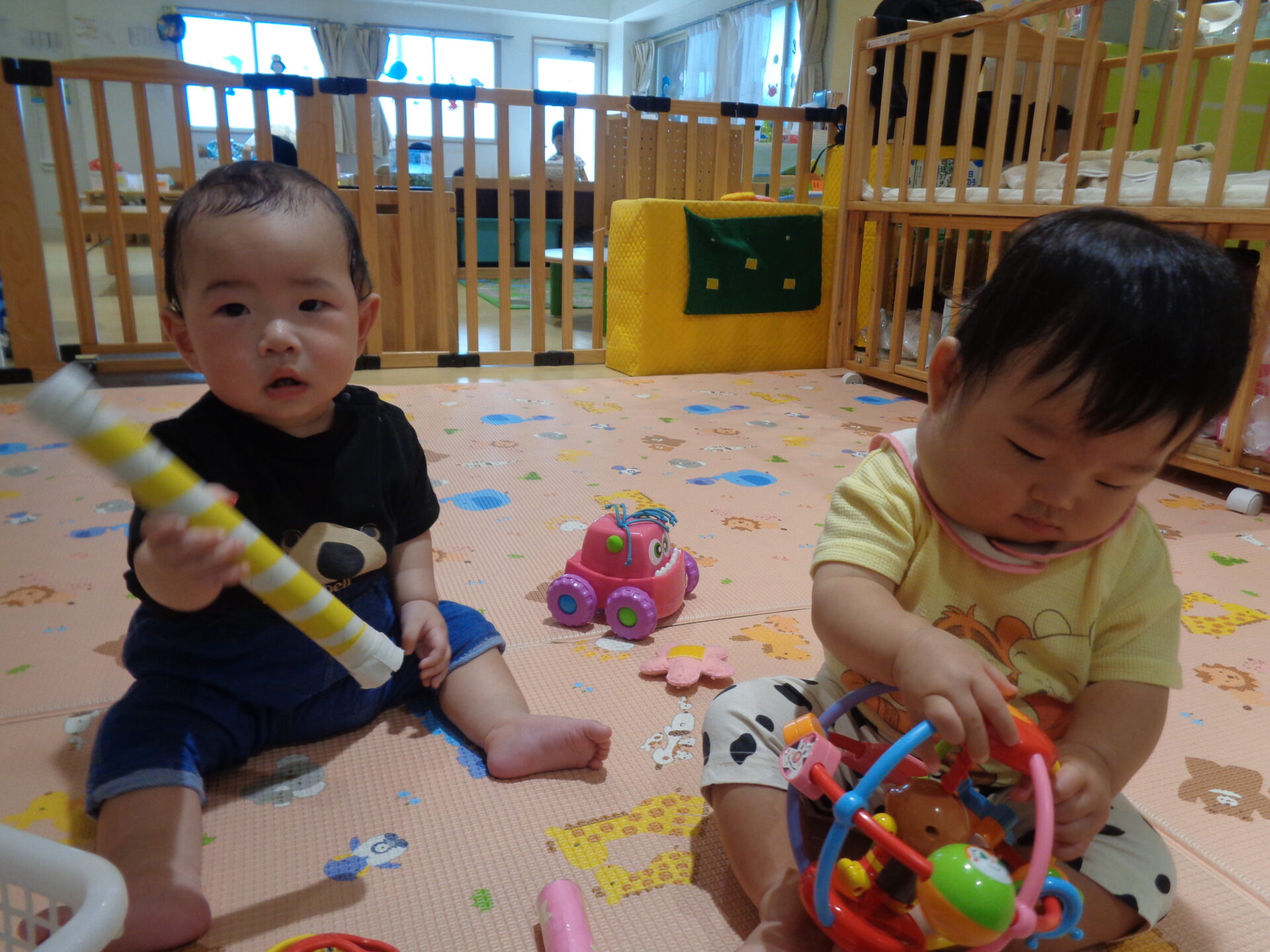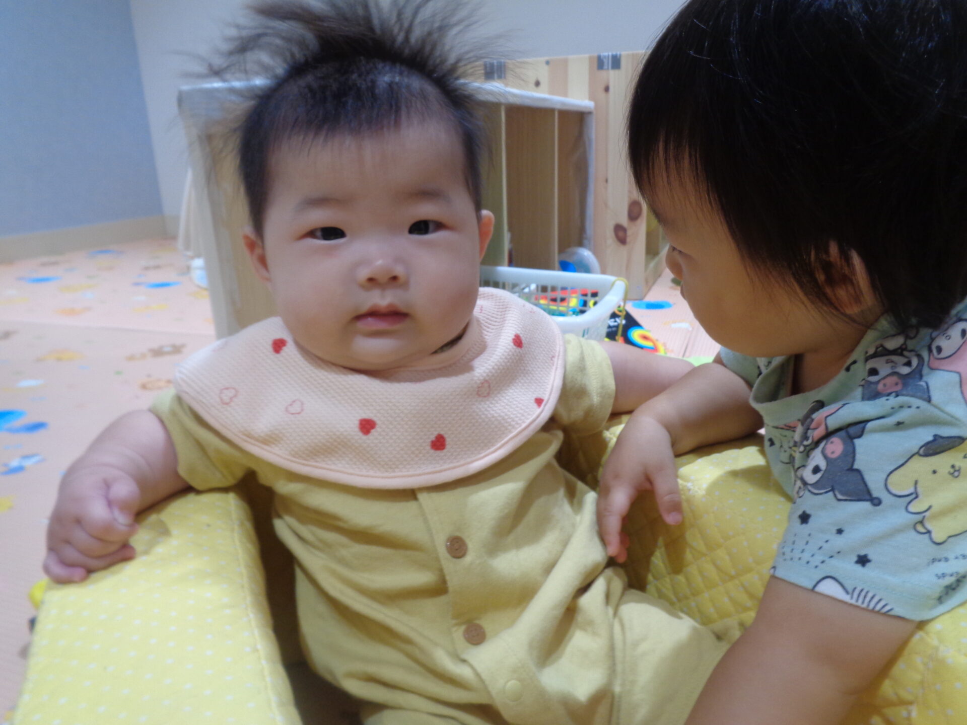 広い部屋に二人で頭をくっつけながら遊んでいることもありました😊