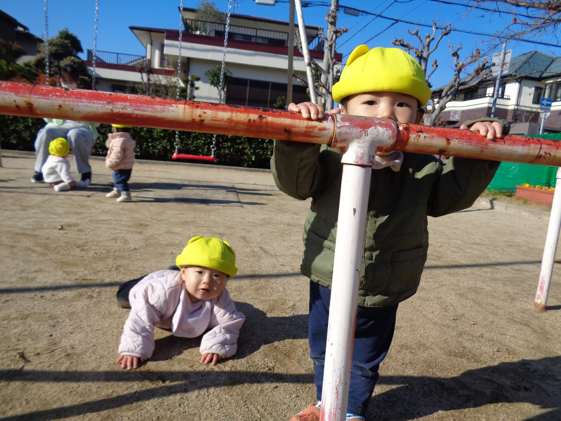 今まで遊べなかった公園の遊具に挑戦したり、