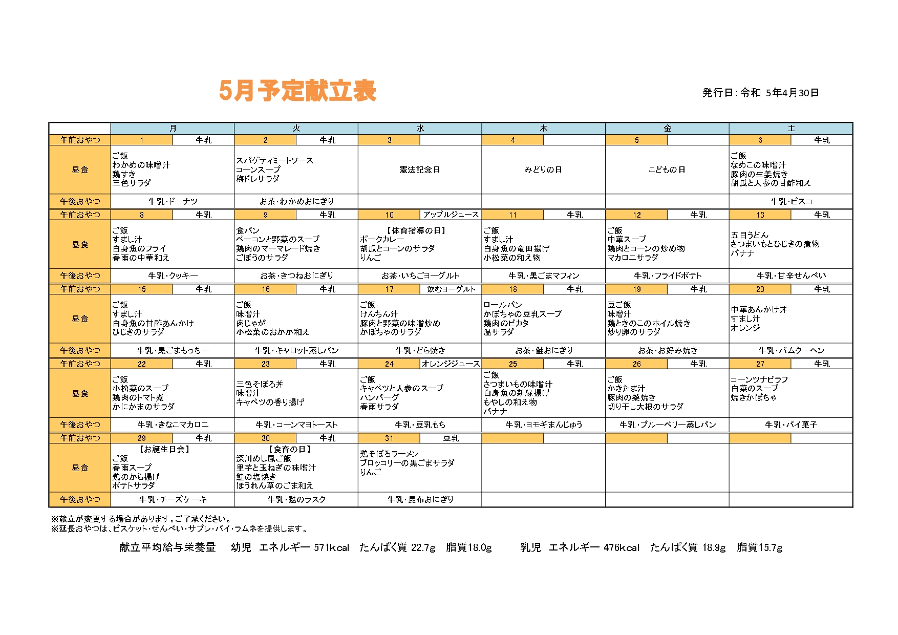 5月の給食だより・献立表