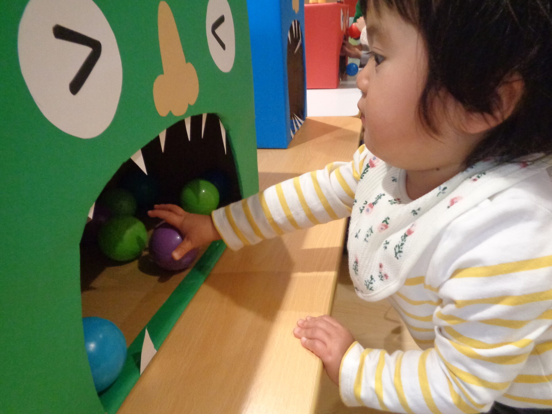 保育士と一緒に勇気を出してボールを投げる子、「やっつけたよ!」と嬉しそうに報告してくれる子、色々な姿がありました。