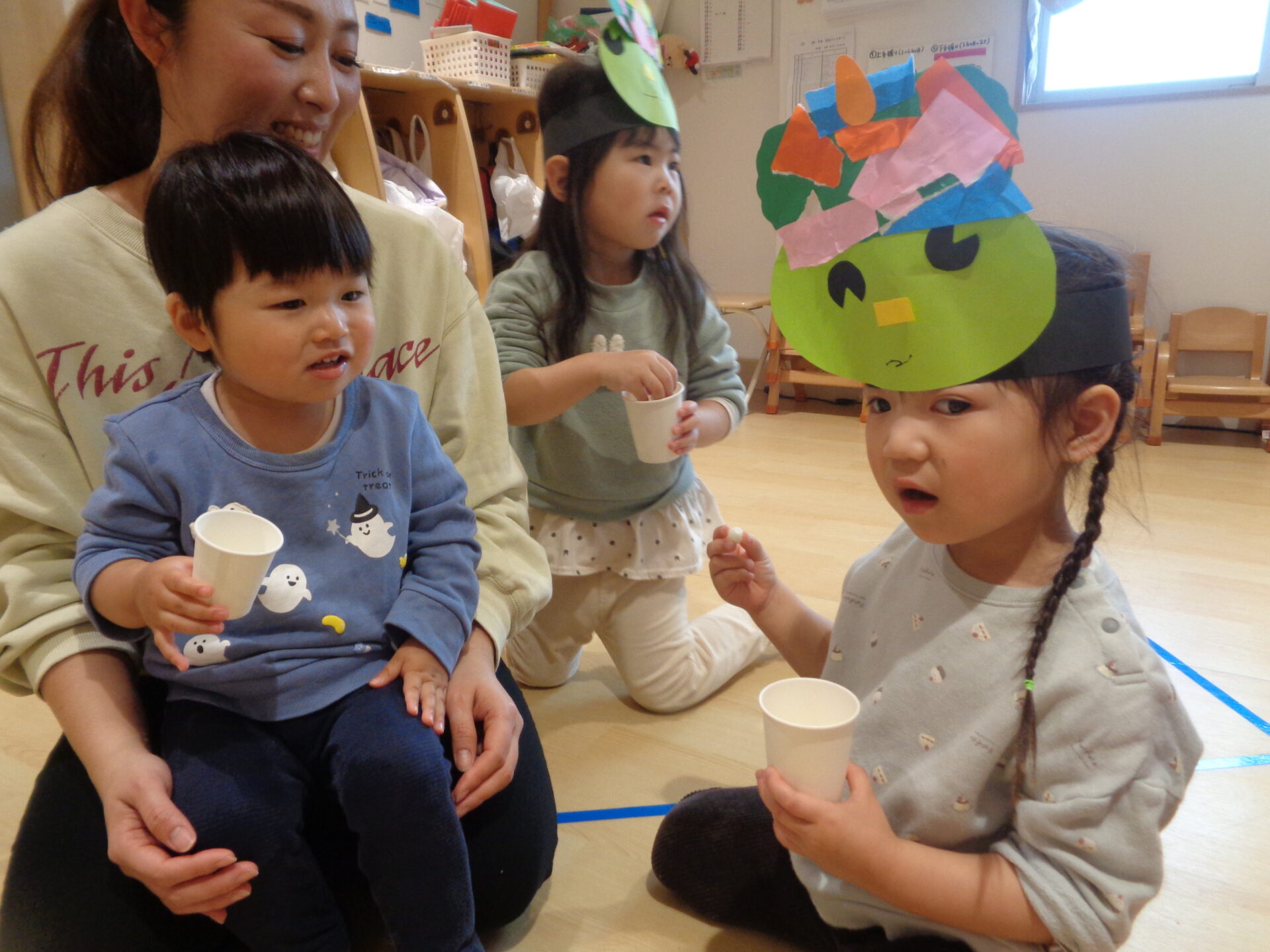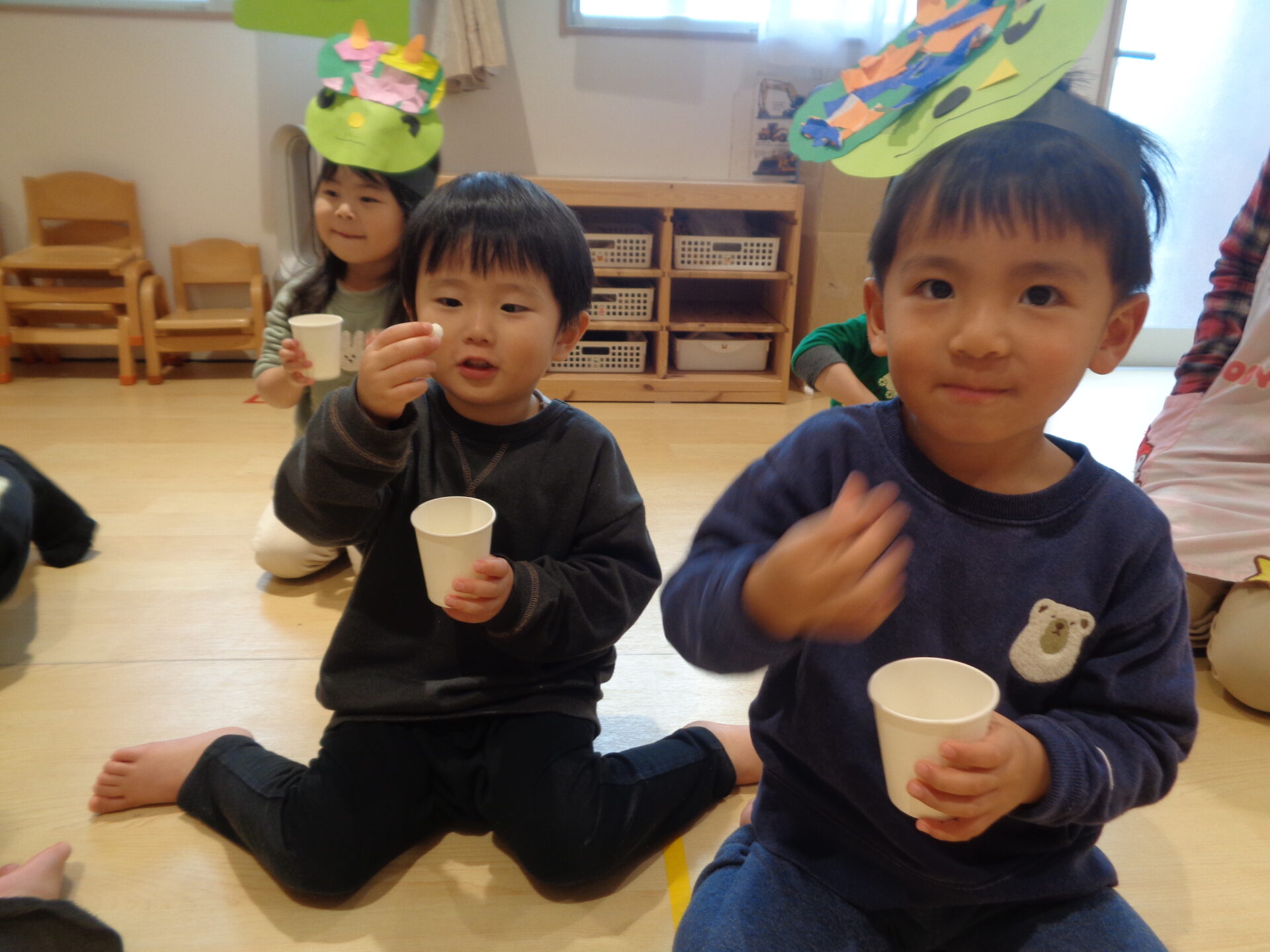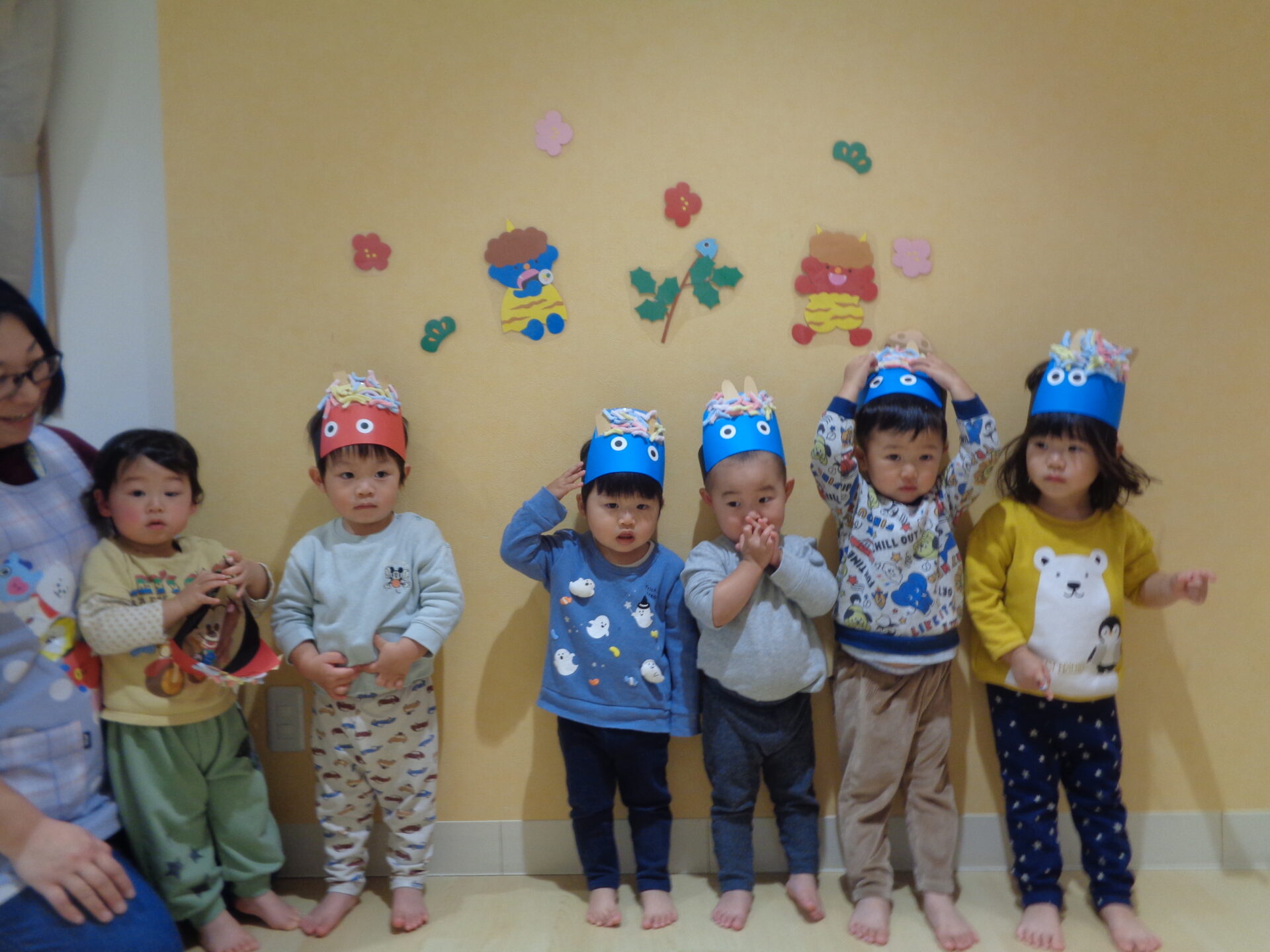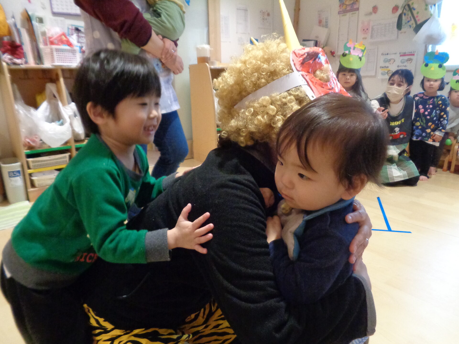 朝から「今日は鬼の日?」と何かがあるのが分かっているのか真顔で緊張した様子の子もいました💦