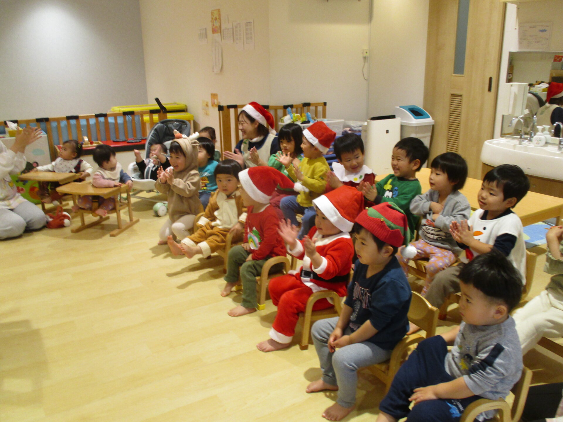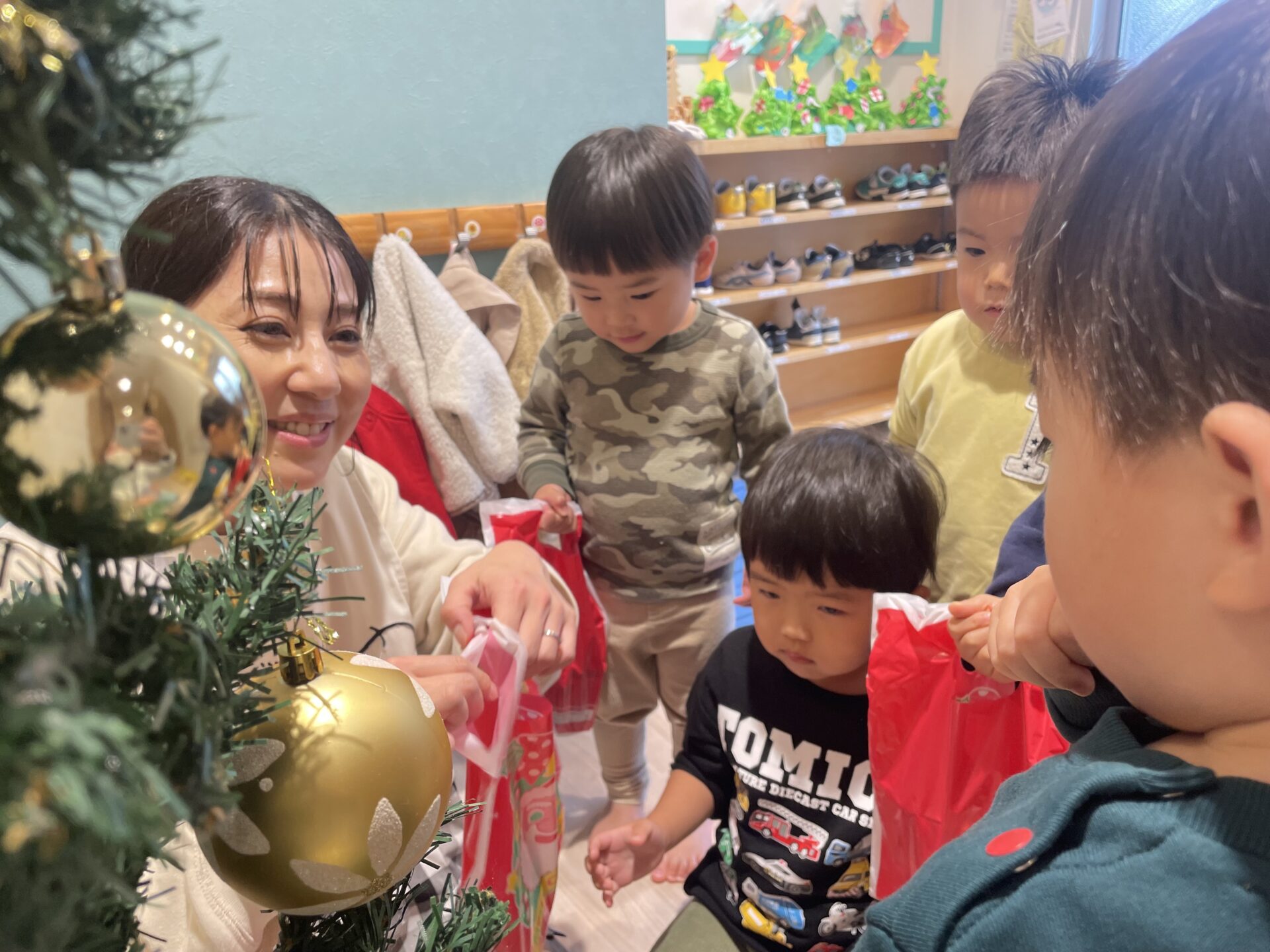 クリスマスらしい服装に身を包んだお友だちもおり、「今日はクリスマス会!」とワクワクした表情で登園してくる子どもたち😊