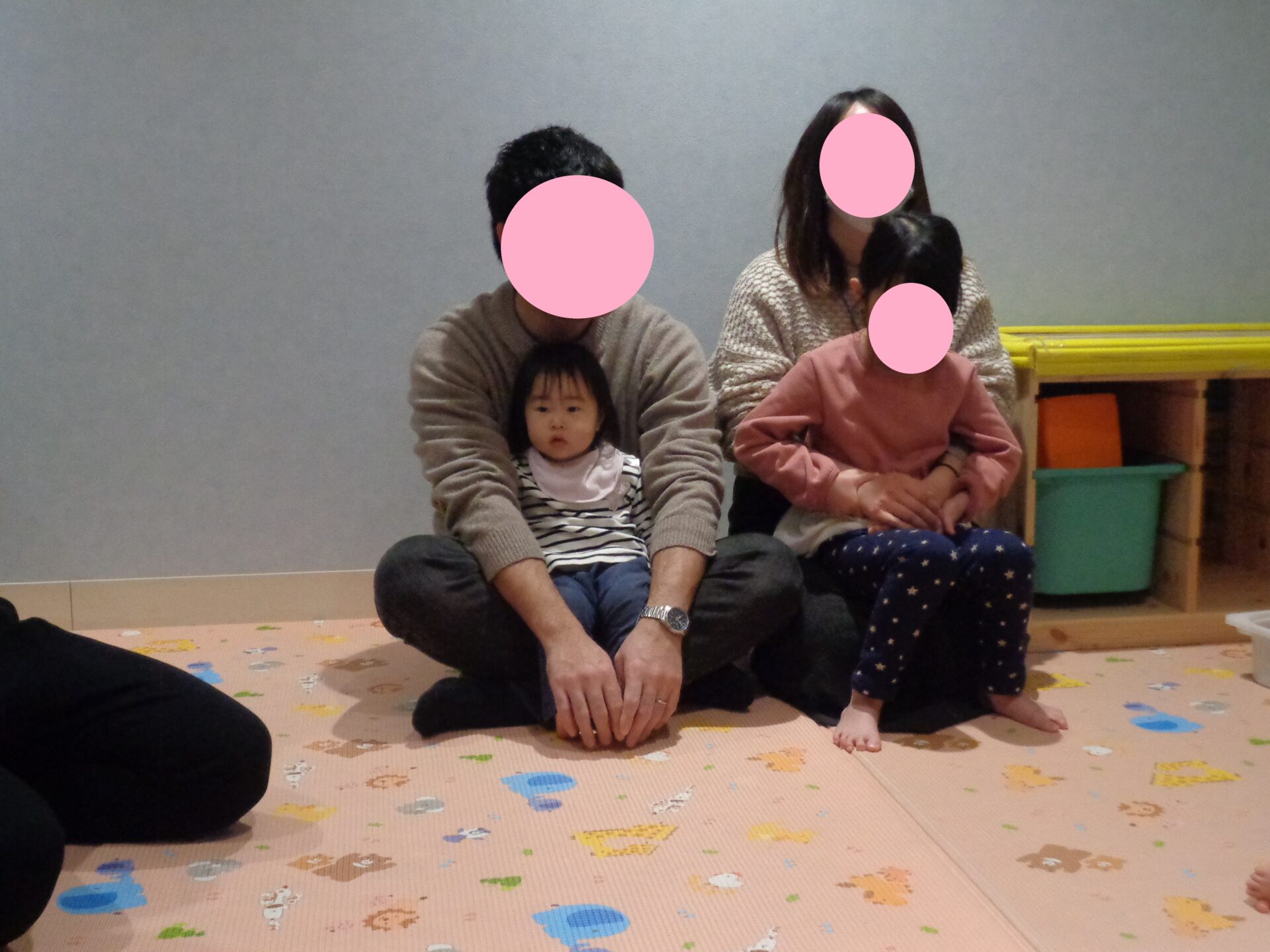 少し時間が経つと、お家の人の足元で遊んでいる子どもも増えました😊